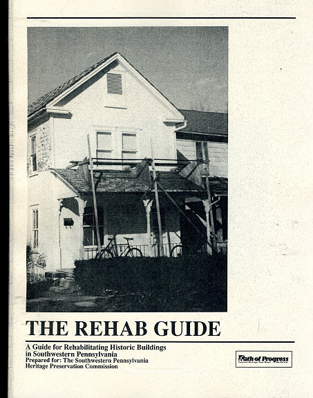 Originally published by the Southwestern Pennsylvania Heritage Preservation Commission, this guide for rehabilitating historic buildings is a reference text. Taking a building part by part, it addresses the best “fix” for each. It also provides a second and third choice for those parts. Addressed in the guide are: walls, windows, doors, porches, roofing, additions, alterations, site work, paint and more. Although originally published in the 1980’s, the information is still valid, even if the cost estimates are no longer relevant. Many black and white photos, 111 pages.